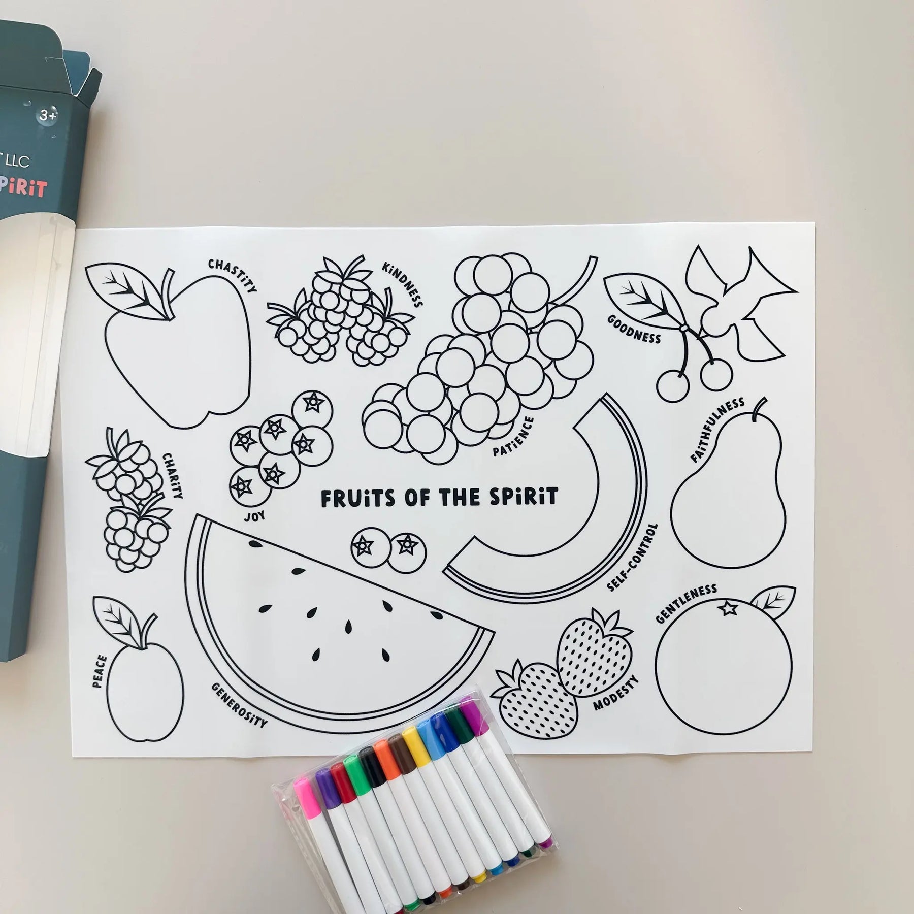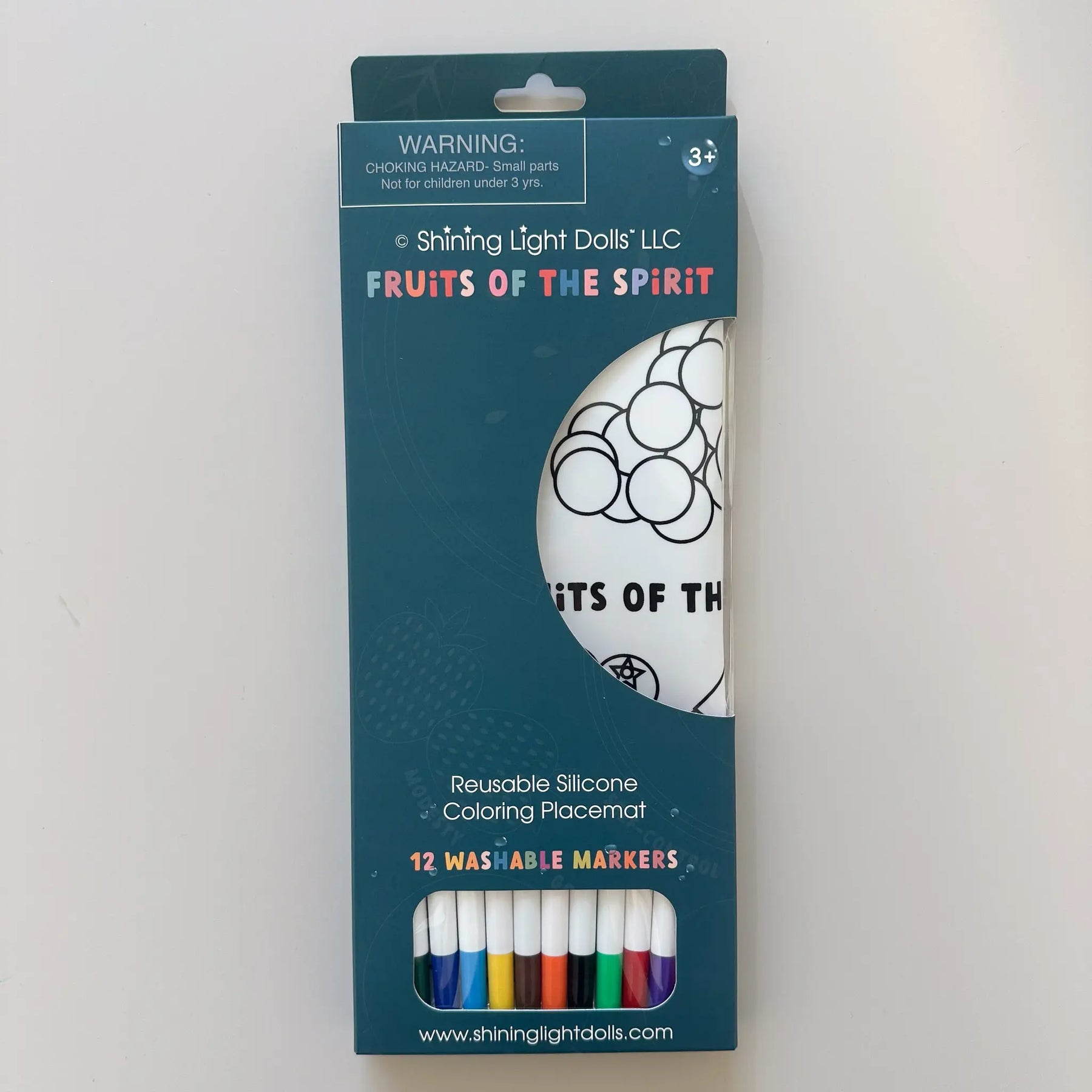 Make mealtime meaningful and fun with our Fruits of the Spirit Reusable Coloring Placemat! This engaging silicone placemat comes with 12 washable markers, letting kids color, create, and learn—all in one place.